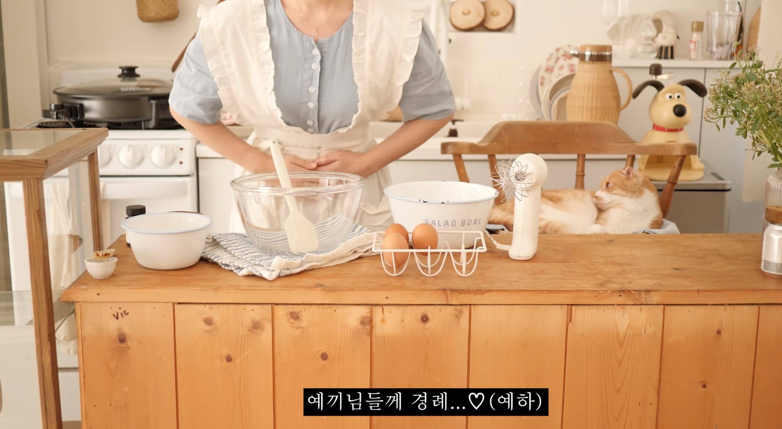 모든 영상에서 예디의 주변을 시키는 고양이가 등장한다. 영상에서 베이킹을 하는 유튜버보다 고양이가 더 얌전히 앉아있는다. 채널의 프로필 사진에 나온 그 고양이로, yedy101 채널 구독자들은 이제 고양이가 등장하지 않으면 이상하다고 생각할 것이다. 시종일관 도망가지 않고 자리를 지키는 고양이는 '고영희씨'로 불리며 재밌는 드립에 자주 사용된다. 베이킹과 고양이의 조합을 싫어할 사람이 얼마나 있을까?